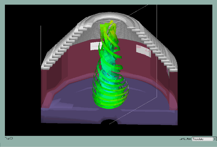 2. Iso-surface of pressure indicating the shape of the cyclone above the quench tank,