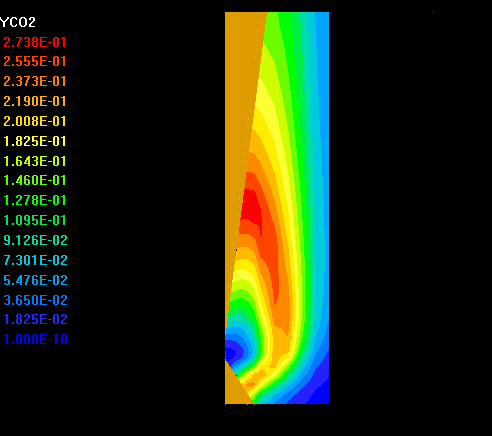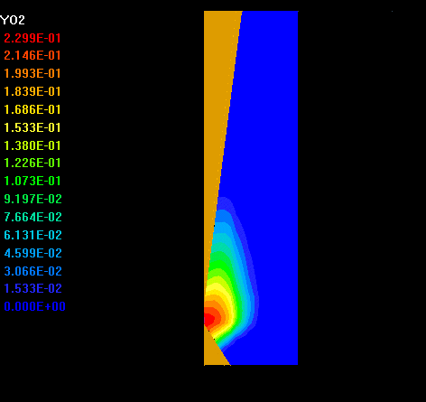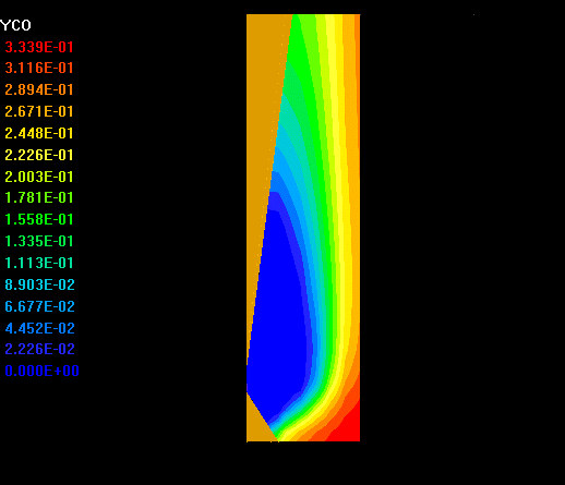 The effective (ie laminar-plus-turbulent) diffusion coefficients of the gaseous species are all taken as equal, and the reaction rates are supposed diffusion-limited; consequently all gas species concentrations depend on carbon mass fraction, in piecewise-linear fashion.