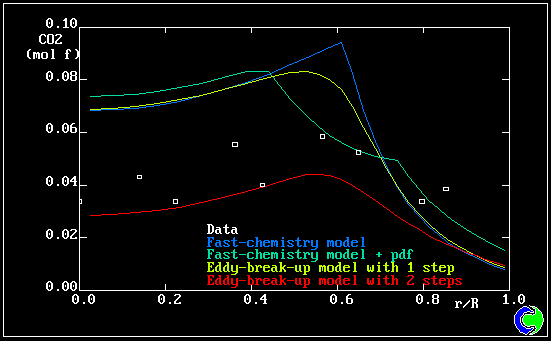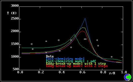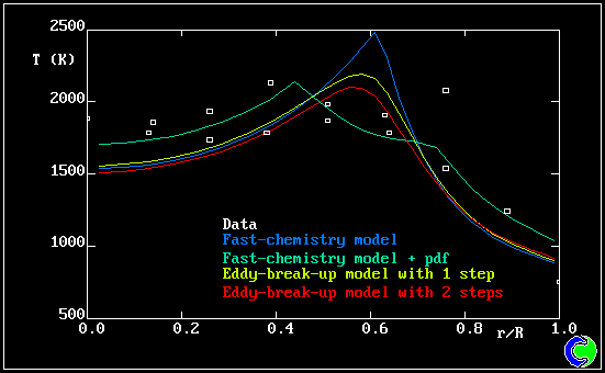 (c) eddy-break-up finite-rate chemistry model with a one-step