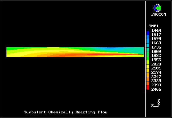 - 2D steady turbulent diffusion flame in a pipe of 0.32m diameter
