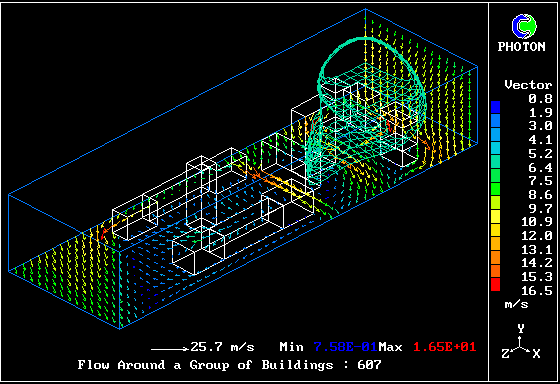 FLOW AROUND A GROUP OF BUILDINGS (Library Case : 607)