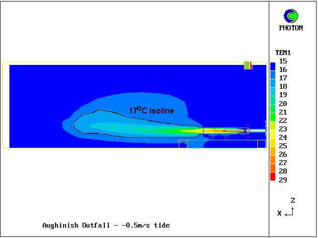 Typical temperature contours through outfall centre-line