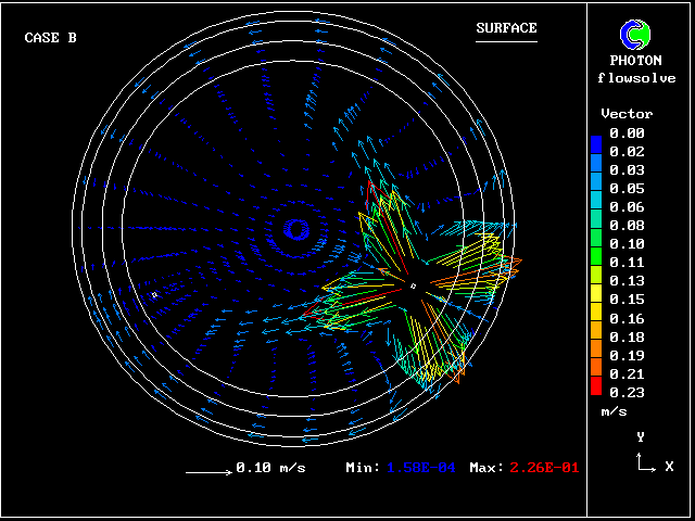 (1) CIRCULAR RESERVOIR, NO BAFFLES - velocity vectors