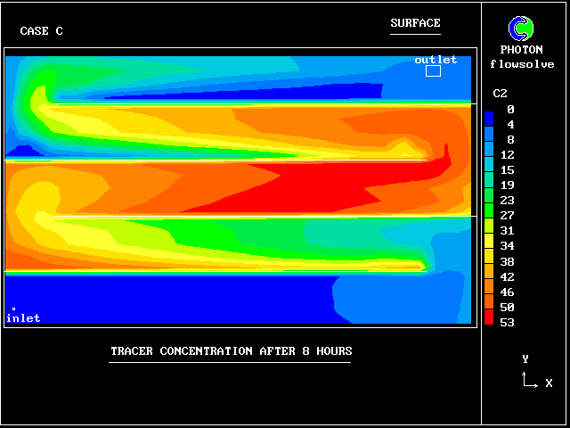 (3) RECTANGULAR RESERVOIR, WITH BAFFLES - tracer concentration
