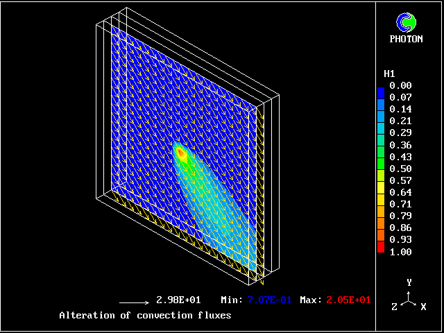 The PLANTing of initial velocity fields, manipulation with them and the alteration of convection fluxes by add-extra-velocity option are demonstrated.