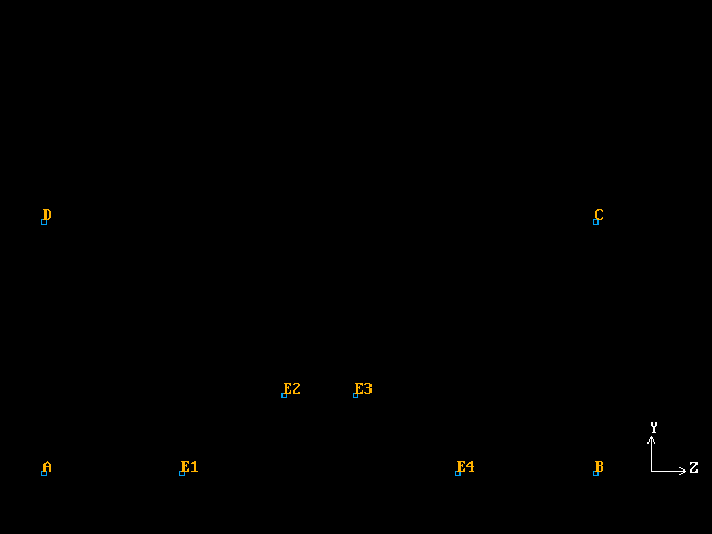 REAL(PI,DD,RR,AN,Z1,Y1,Y2) PI=3.14159;DD=0.5;RR=0.2;AN=40 AN=AN*PI/180. Z1=RR*SIN(AN) Y1=DD*TAN(AN)-RR/COS(AN)+RR*COS(AN) Y2=DD*TAN(AN)-RR/COS(AN)+RRBFC=T GSET(P,A,0,0,-1) GSET(P,B,0,0,1) GSET(P,C,0,1,1) GSET(P,D,0,1,-1) GSET(P,E1,0,0,-DD) GSET(P,E2,0,Y1,-Z1) GSET(P,E3,0,Y1,Z1) GSET(P,E4,0,0,DD)